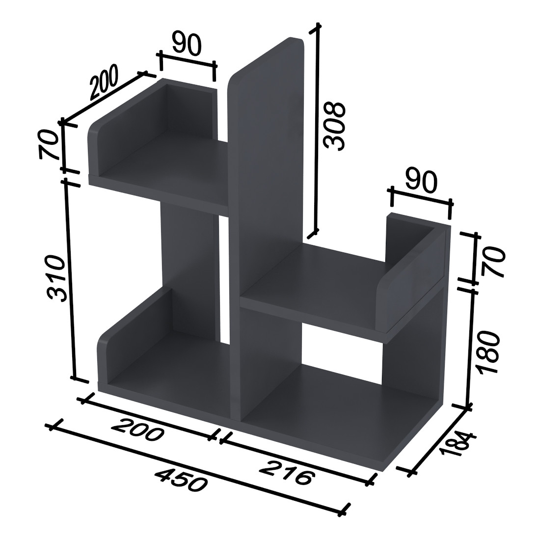 Матеріал виготовлення – ламіноване ДСП у кольорі Антрацит товщиною 18 мм.
