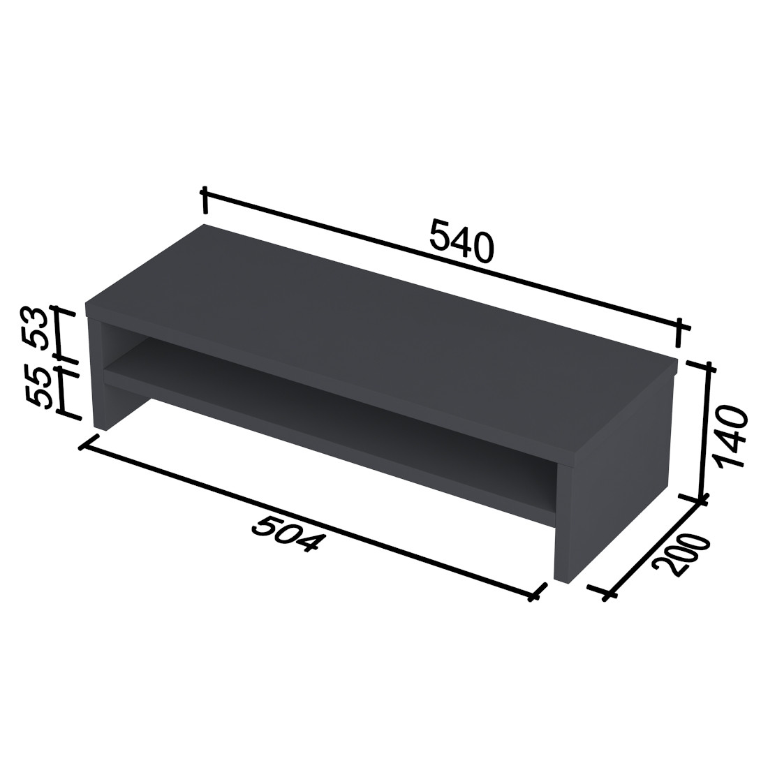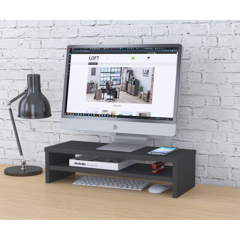 Надставка під монітор NS-7 від компанії Loft Design – це стильна та практична підставка для вашого монітора. Матеріал виготовлення - ламіноване ДСП у кольорі Антрацит товщиною 18 мм, краї вкриті кромкою 2 мм.