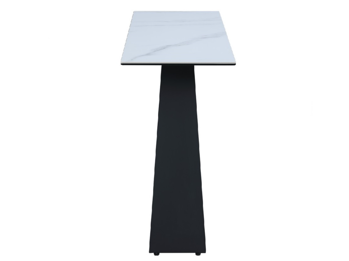 Основу консольного столика виконано з фарбованого металу чорного кольору, що додає конструкції стабільності та сучасного вигляду. Такий контраст із білим мармуром робить стіл справжнім акцентом будь-якого інтер’єру.