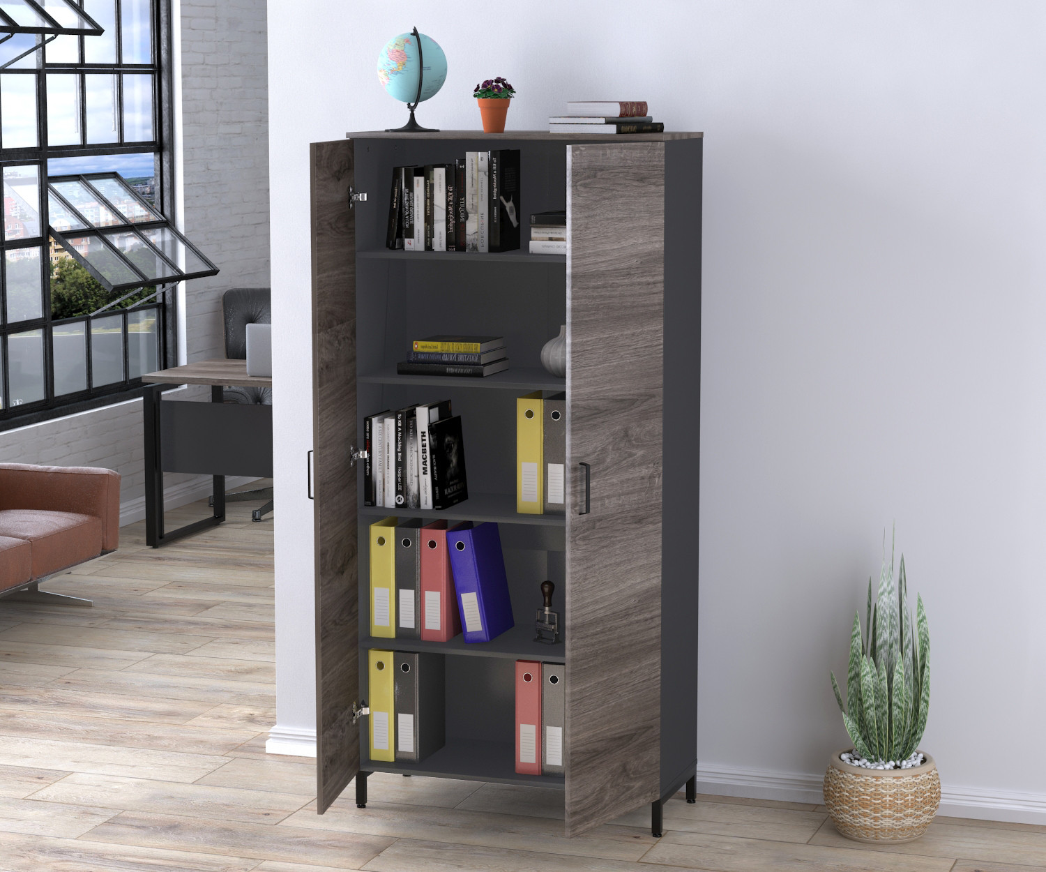 Шкаф офисный LT-900-1900 антрацит Дуб Палена