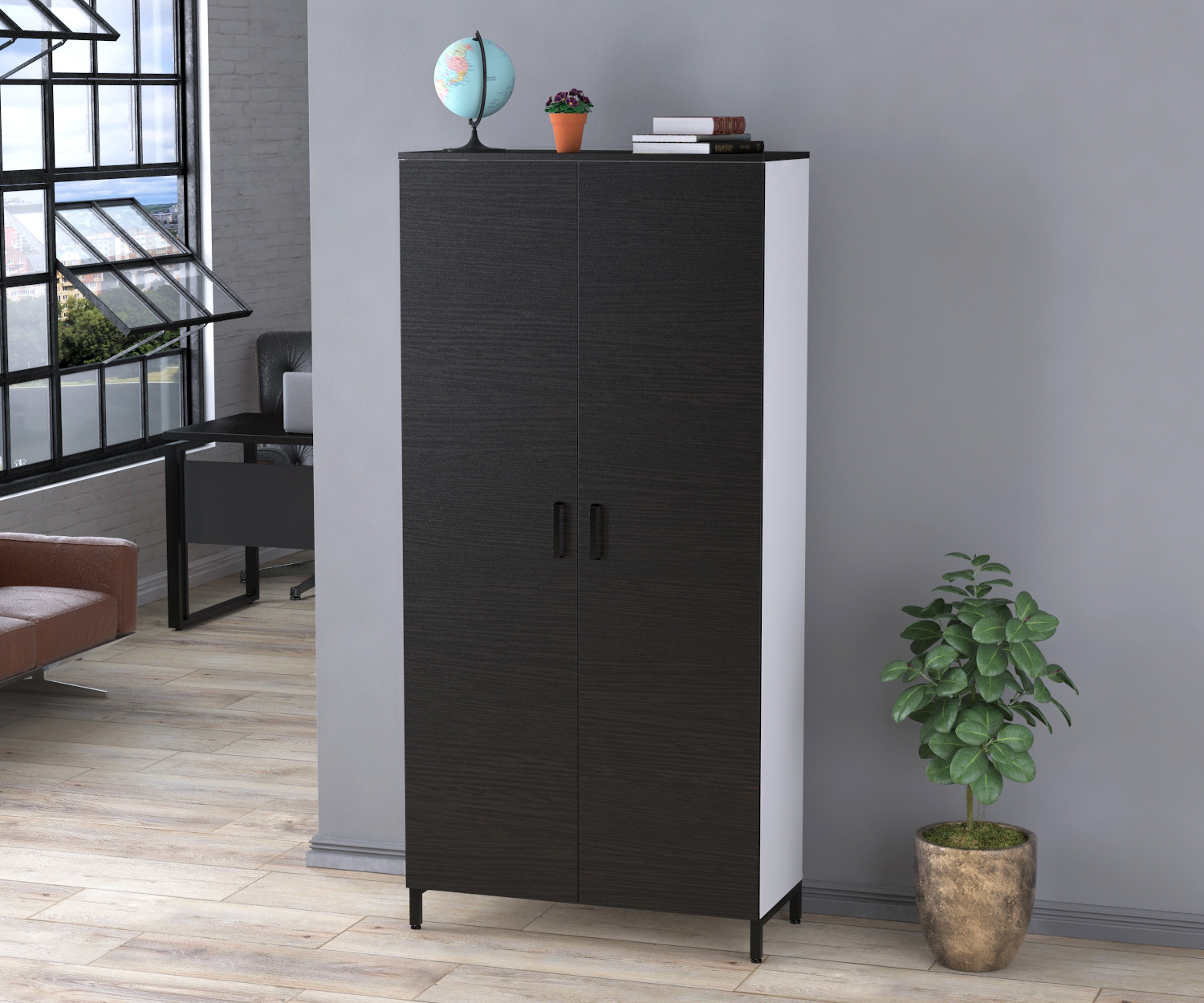 LT-900-1900 антрацит - це класична офісна шафа з двома дверима та полицями всередині. Однак він має деякі відмінні риси, які виділяють його серед аналогів.