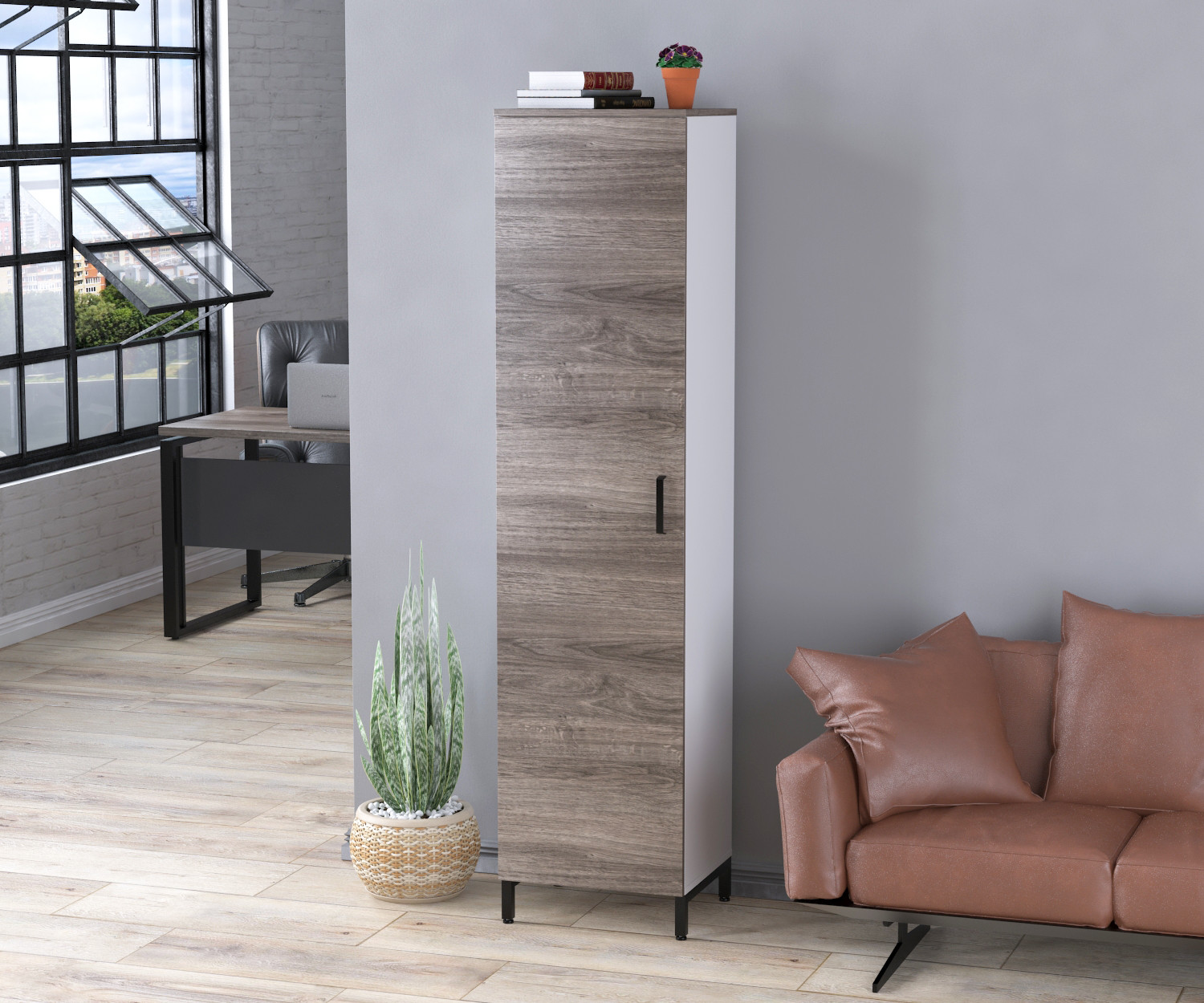 LT-450-1900 антрацит - це класична офісна однодверна шафа або пенал з полицями всередині. Однак, він має деякі відмінні риси, які виділяють його серед аналогів.