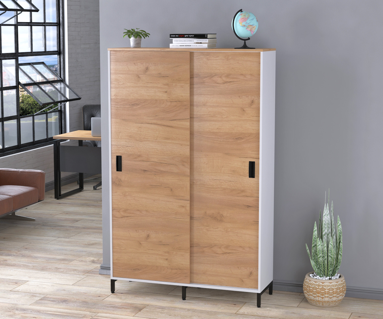 Шкаф офисный раздвижной LS-1200-1900 белый Дуб Палена