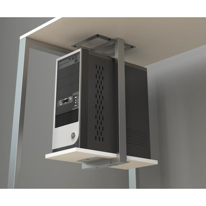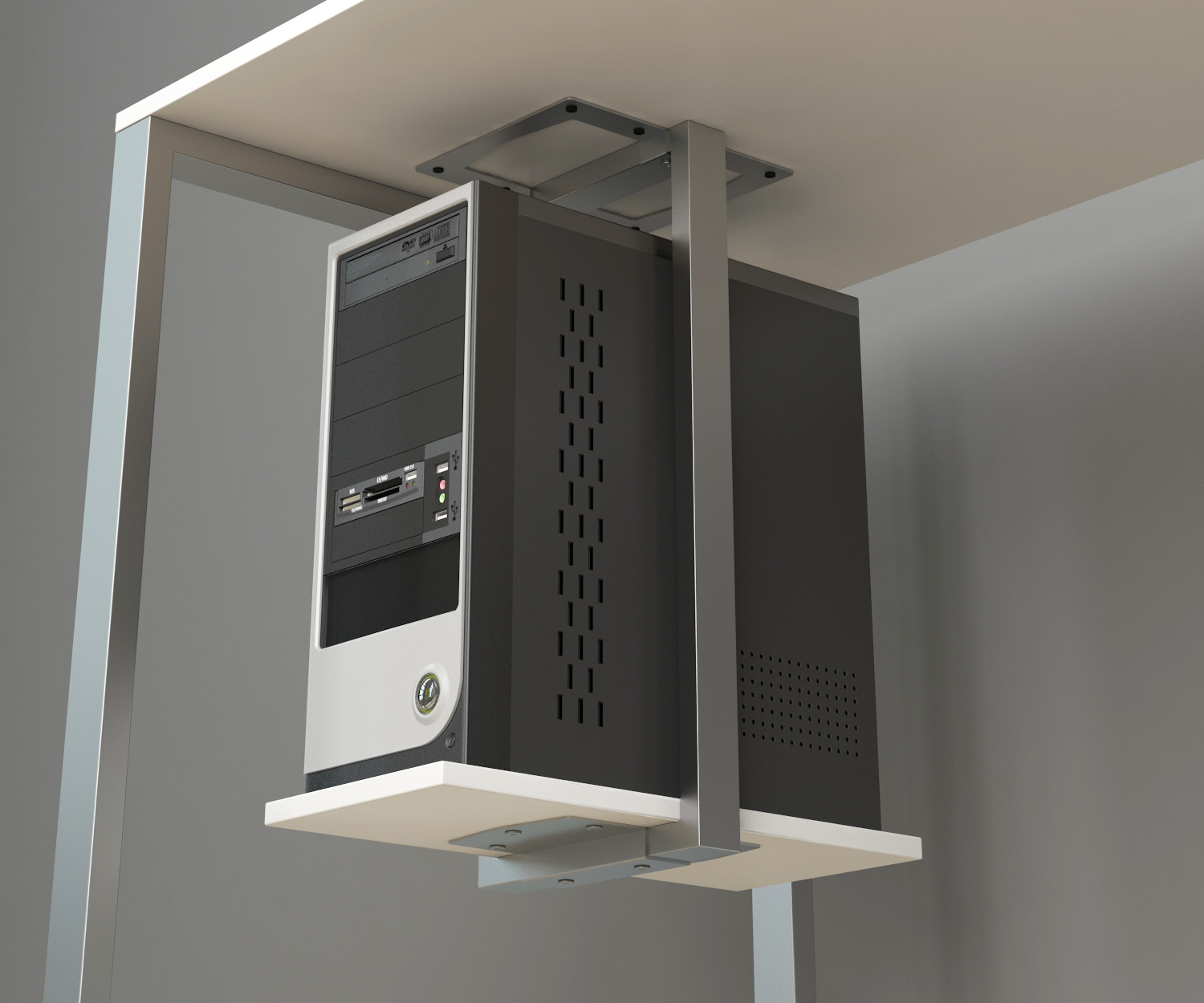 Він підійде практично до будь-якого столу, тому що кріпиться безпосередньо до стільниці. Тримач складається з металевих деталей (рамки та кріпильних пластин) та полиці з ДСП.