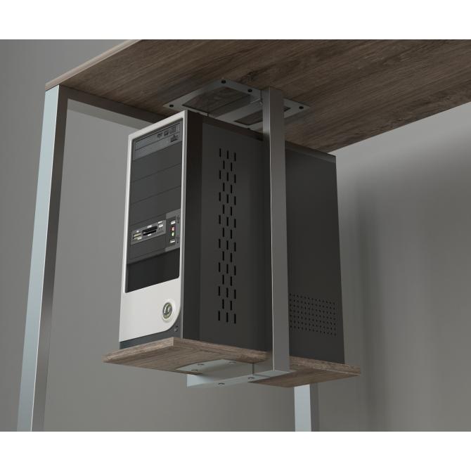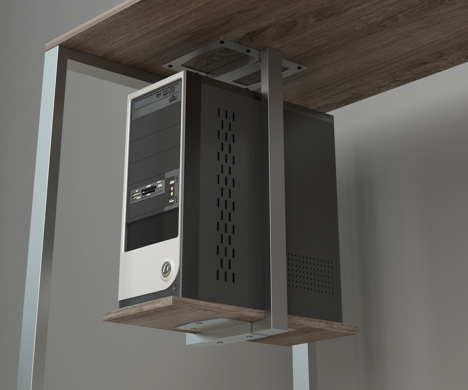 Він підійде практично до будь-якого столу, тому що кріпиться безпосередньо до стільниці. Тримач складається з металевих деталей (рамки та кріпильних пластин) та полиці з ДСП.