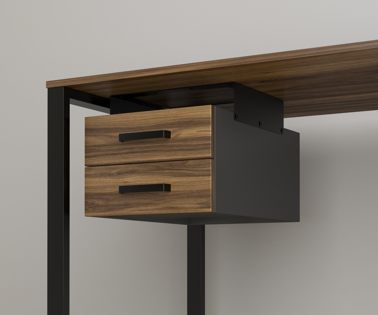 Навісну шухляду для столу BX-2 можна встановити на більшість столів виробництва компанії Loft Design і не тільки. Він кріпиться безпосередньо до стільниці за допомогою шурупів.