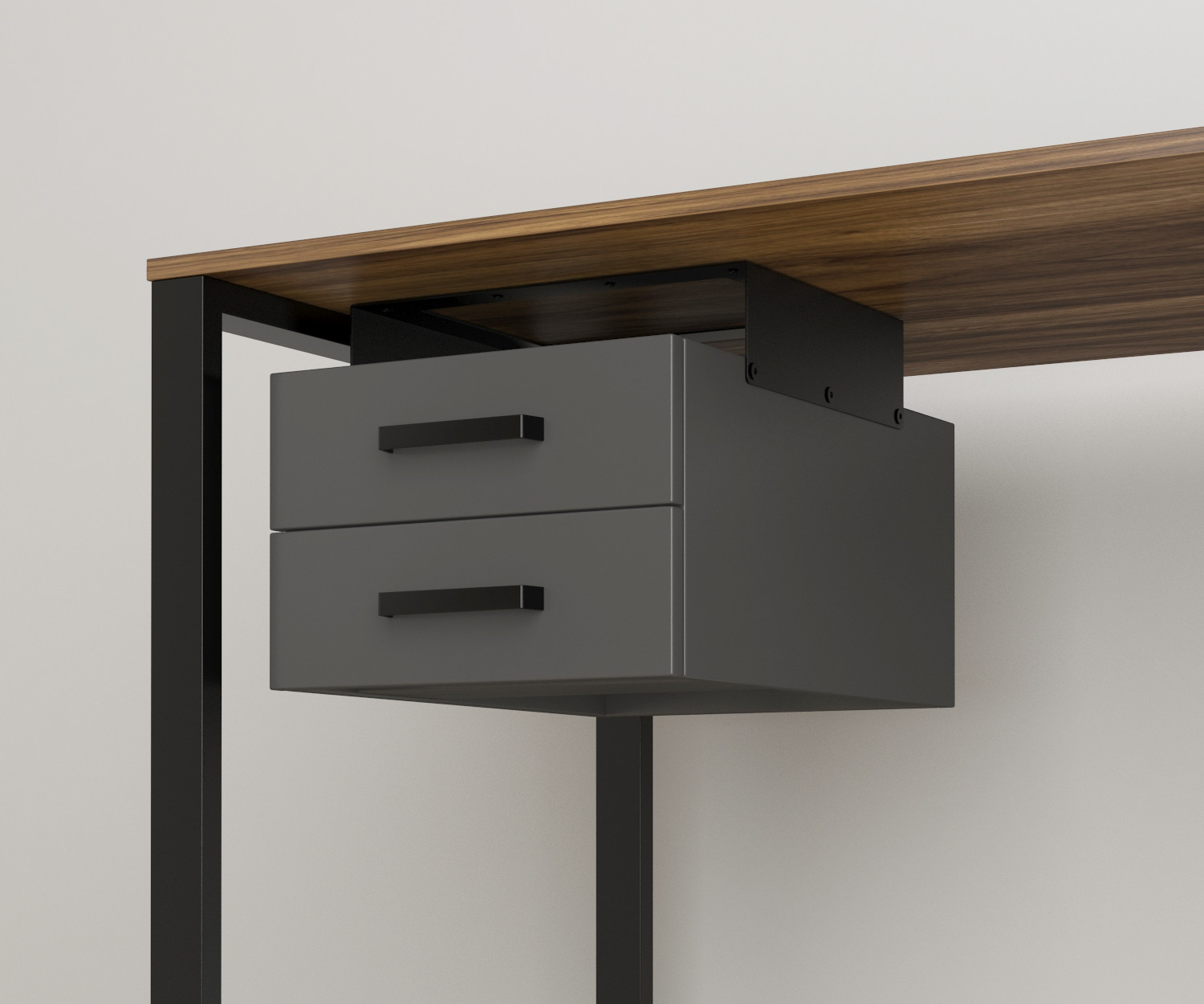 Навісну шухляду для столу BX-2 можна встановити на більшість столів виробництва компанії Loft Design і не тільки. Він кріпиться безпосередньо до стільниці за допомогою шурупів.
