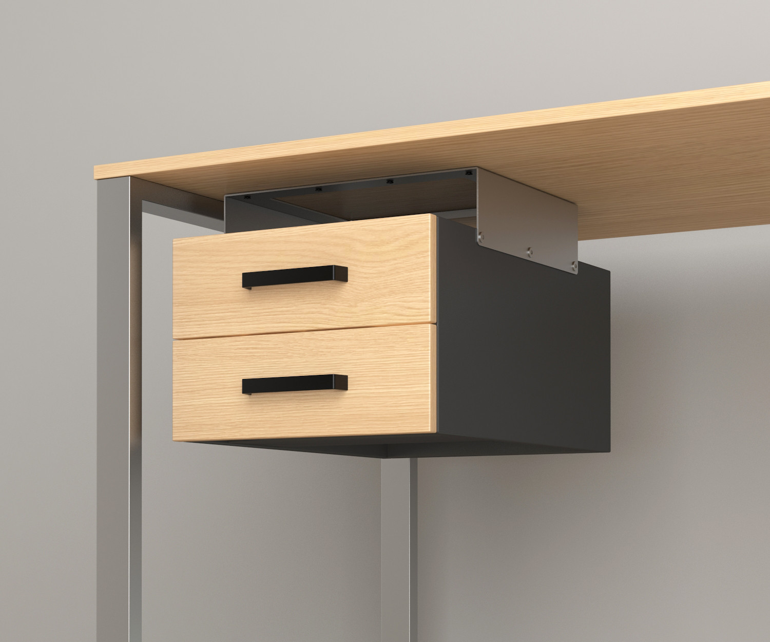 Навісну шухляду для столу BX-2 можна встановити на більшість столів виробництва компанії Loft Design і не тільки. Він кріпиться безпосередньо до стільниці за допомогою шурупів.