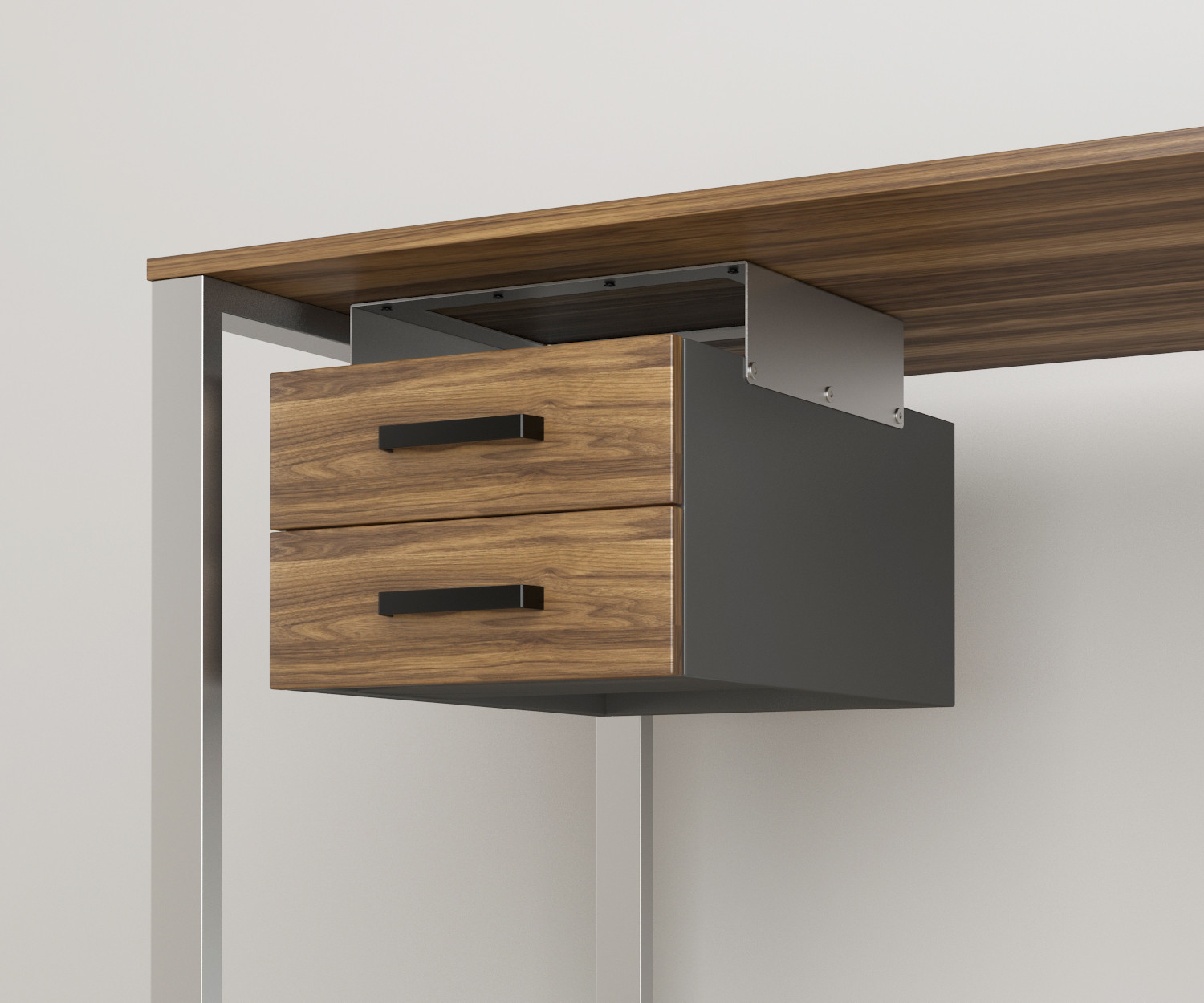 Навісну шухляду для столу BX-2 можна встановити на більшість столів виробництва компанії Loft Design і не тільки. Він кріпиться безпосередньо до стільниці за допомогою шурупів.