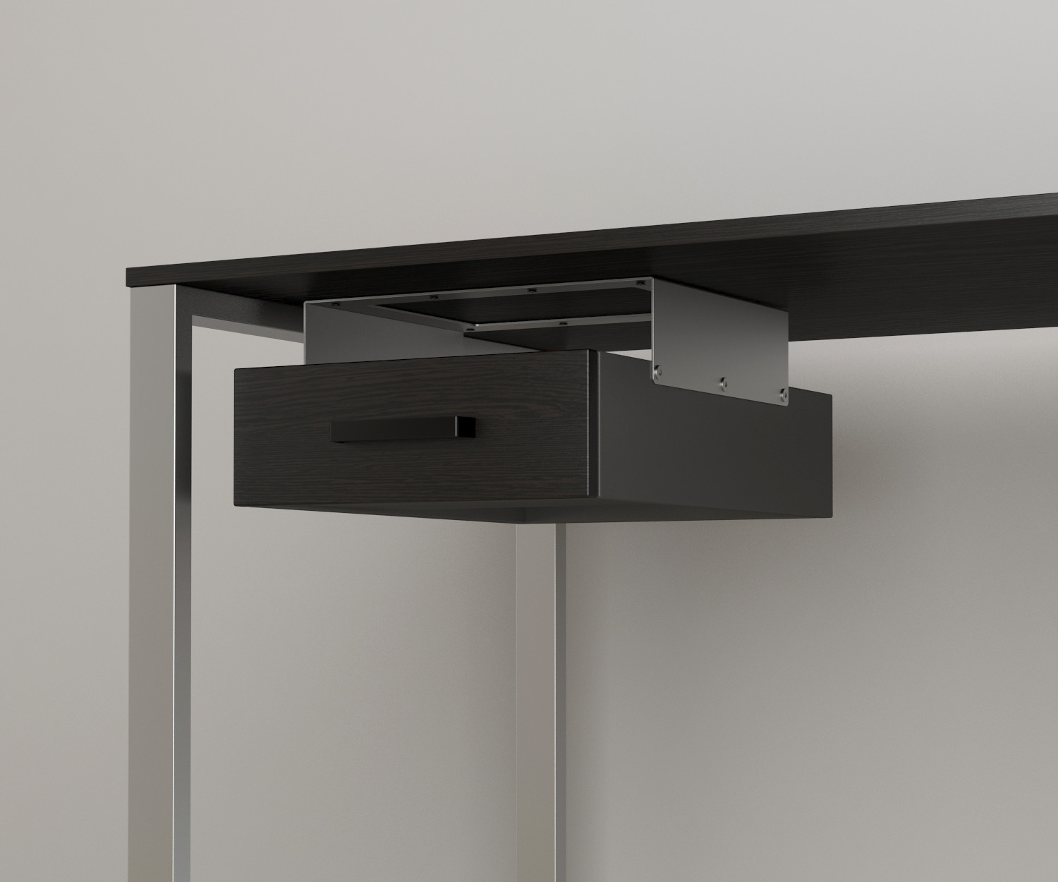 Шухляда для столу BX-1 можна встановити на більшість столів виробництва компанії Loft Design і не тільки. Він кріпиться безпосередньо до стільниці за допомогою шурупів. У наш час ми все рідше використовуємо ящики, оскільки папір замінюється електронними носіями. Однак, ручка, блокнот та інша дрібниця все ще знаходиться на кожному робочому місці. Якщо Ви любите порядок у всьому, і Вам подобається коли на столі немає нічого зайвого, достатньо встановити одинарну навісну скриньку, щоб наприкінці робочого дня складати туди все від сторонніх очей.