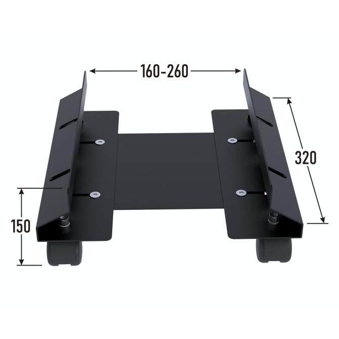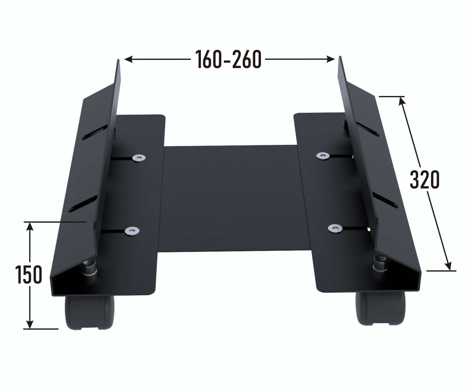 Підставка легко настроюється під різні розміри системних блоків завдяки можливості регулювання ширини від 160 мм до 260 мм, забезпечуючи ідеальну посадку та надійне фіксування.
