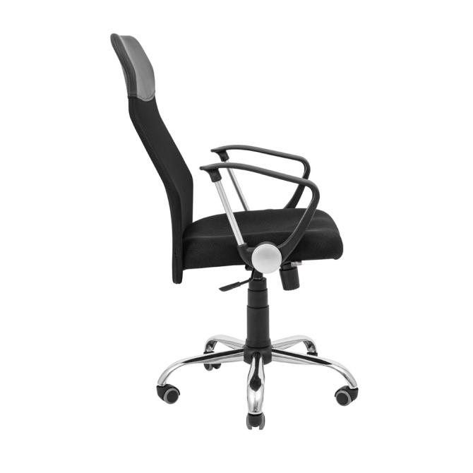 Велике сидіння ергономічної форми, вкрите сітчастою тканиною, забезпечує приємні відчуття навіть у спекотні дні. Стильні підлокітники, виготовлені з комбінації чорного пластику та металевої труби, мають текстуровану поверхню, яка запобігає зісковзуванню рук під час роботи.