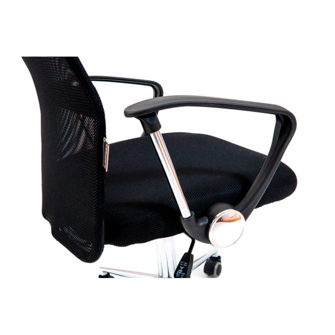 Велике сидіння ергономічної форми, вкрите сітчастою тканиною, забезпечує приємні відчуття навіть у спекотні дні. Стильні підлокітники, виготовлені з комбінації чорного пластику та металевої труби, мають текстуровану поверхню, яка запобігає зісковзуванню рук під час роботи.