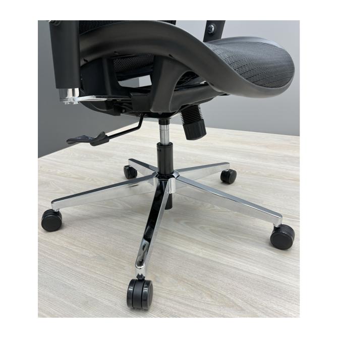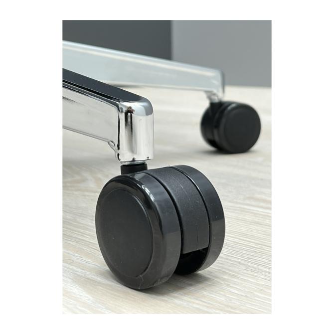 Завершує образ елегантна хромована хрестовина діаметром 720 мм з 60 мм прогумованими роликами для безпечного пересування як по плитці, так і по ламінату або паркету.