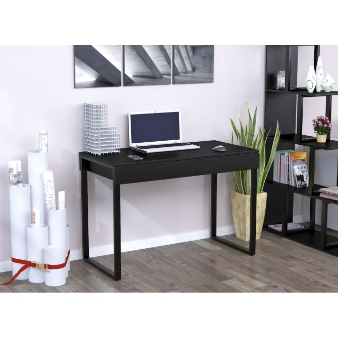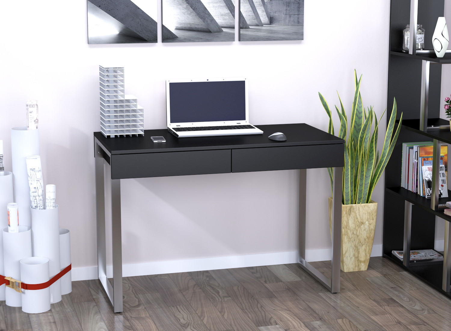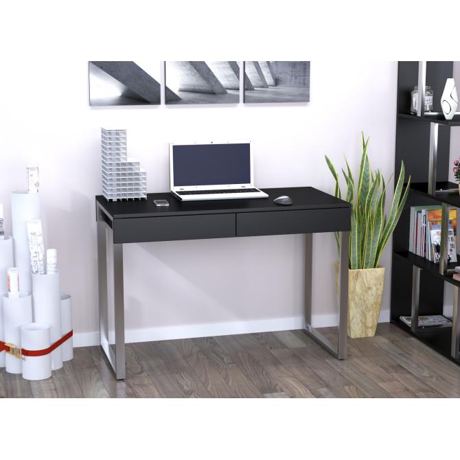 Це компактний письмовий стіл, що підходить навіть для невеликих приміщень. Міцність і надійність конструкції забезпечують масивні металеві ніжки. Під стільницею розташовані місткі ящики для офісних документів та канцелярського приладдя.