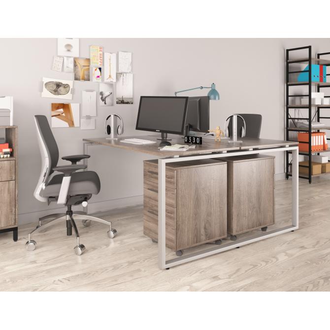 Стіл Q-140 виконаний в сучасному стилі Лофт, якому властива функціональність і максимально раціональне використання простору. Металевий каркас і над ним тонка стільниця, не дивлячись на свій надійний вигляд, не загороджує простір. Здвоєні столи в офісі налаштовують співробітників фірми на командну роботу, а також відкритість і рівноправність.