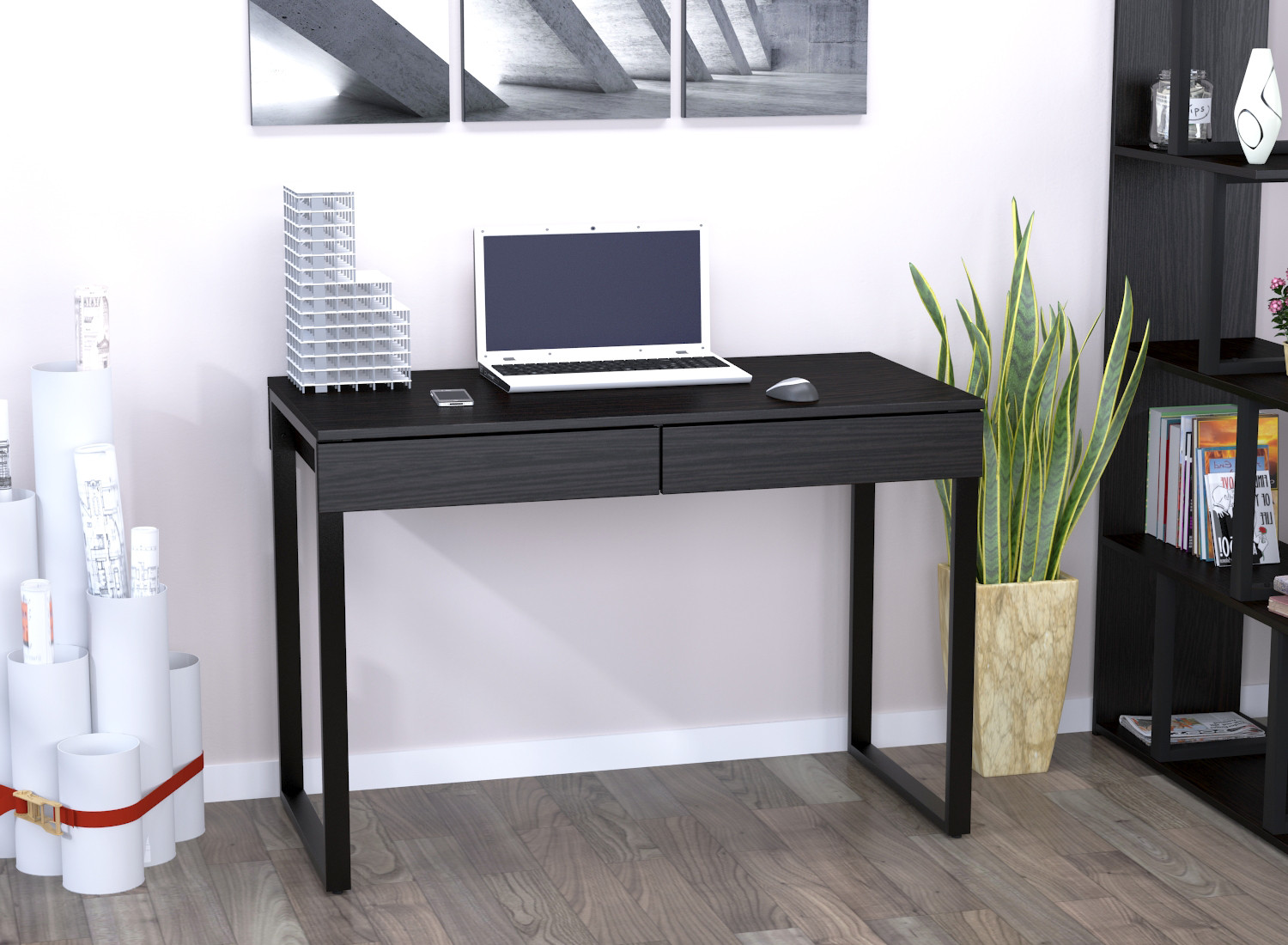 Це компактний письмовий стіл, що підходить навіть для невеликих приміщень. Міцність і надійність конструкції забезпечують масивні металеві ніжки. Під стільницею розташовані місткі ящики для офісних документів та канцелярського приладдя.