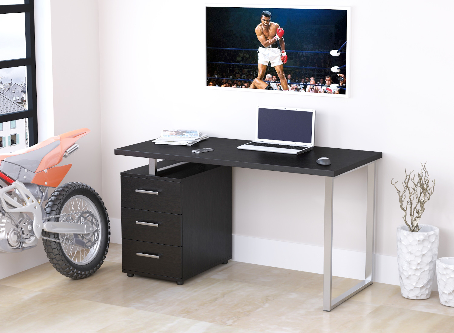 • Тумба. Складається з трьох об'ємних, глибоких ящиків. Може встановлюватися з правої або лівої сторони столу – як зручно користувачу.