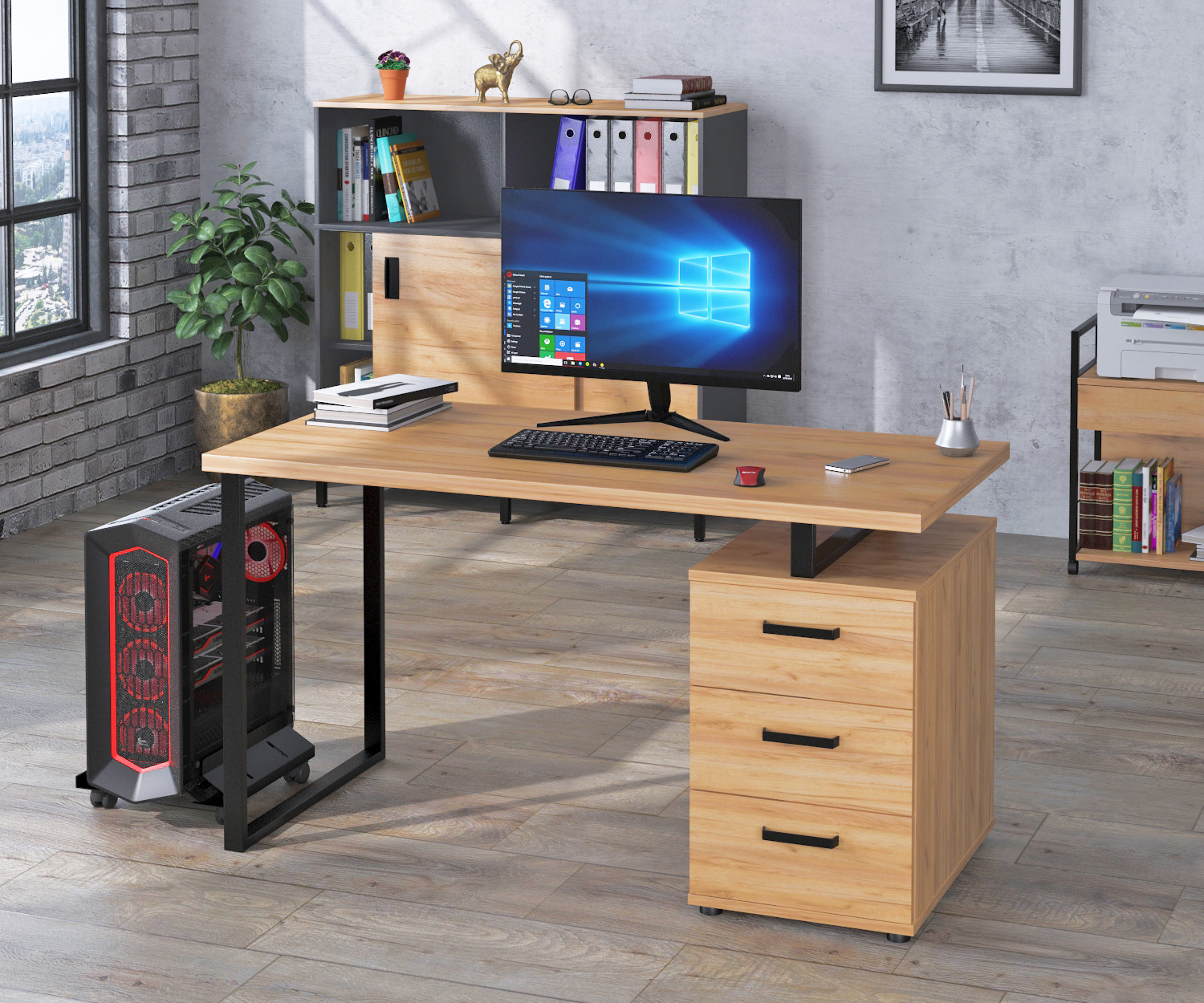 Письмовий стіл L-27 max від Loft Design – універсальна модель, яка буде добре виглядати в офісі або квартирі будь-яких розмірів. Підійде для мініатюрного приміщення, дозволить економити простір і зберігати усi документи в одному місці. В столі можна розмістити товсті архівні папки, книги, великі блокноти, канцелярське приладдя, важливі речі.