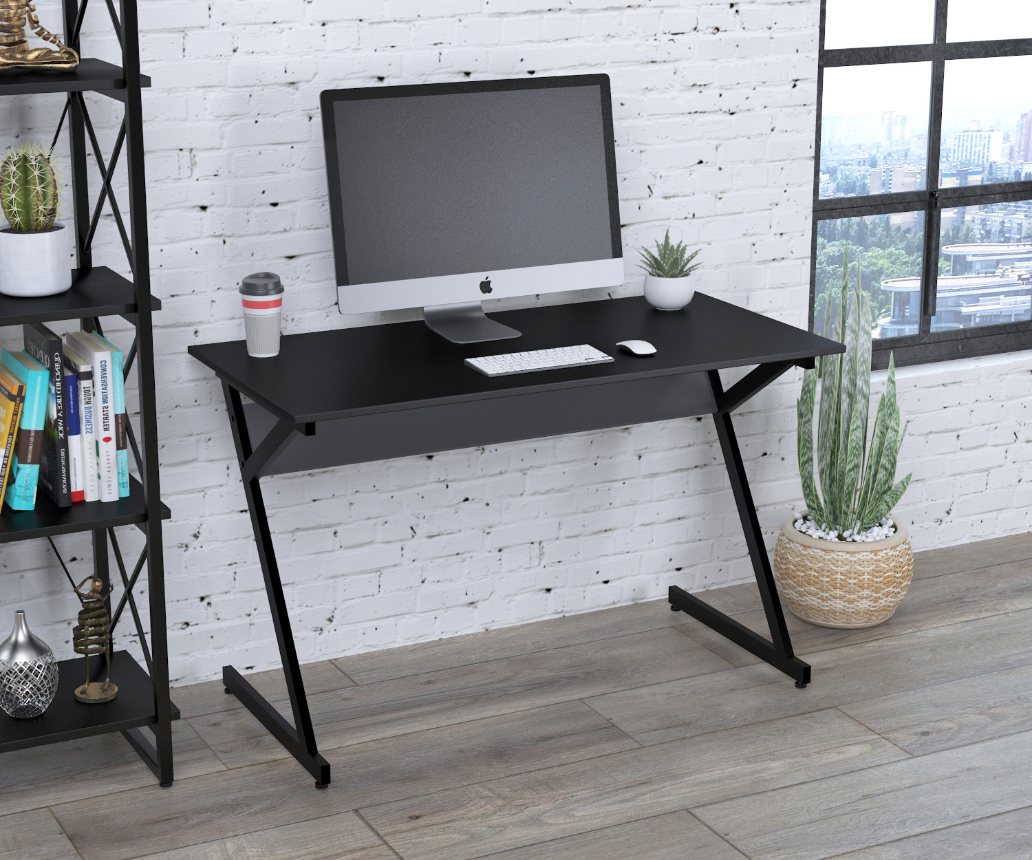 Письмовий стіл L-7-120 – це збільшена модифікація супер-популярного столу L-7. Він полюбився клієнтам завдяки незвичайній та стильній конструкції. Замість звичних чотирьох опор тут дві Z-подібні ніжки, виконані з металевої труби 40*20 мм.