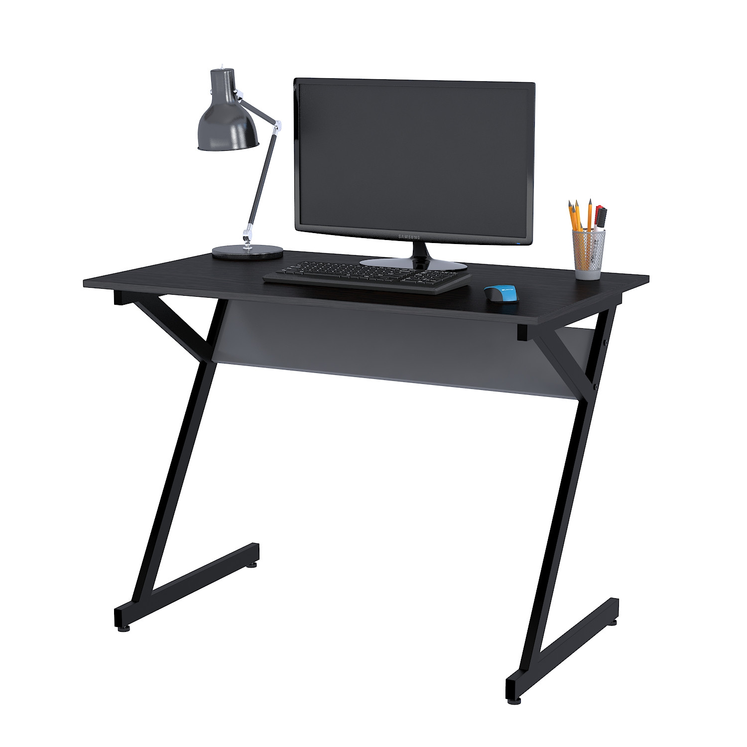 Стіл L-7 має оригінальну конструкцію корпусу, яка ламає наші стереотипи про столи. Замість звичних нам чотирьох опор тут дві Z-подібні ніжки, виконані з металевої труби 40*20 мм. Між ногами встановлена балка жорсткості з ДСП у кольорі антрацит, а під стільницею є металева балка, яка підтримує стільницю.