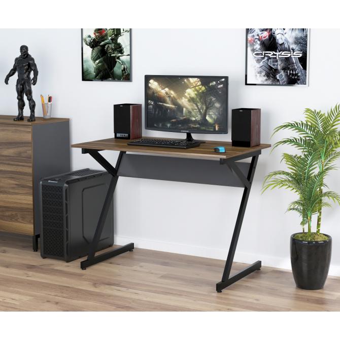 Стіл L-7 має оригінальну конструкцію корпусу, яка ламає наші стереотипи про столи. Замість звичних нам чотирьох опор тут дві Z-подібні ніжки, виконані з металевої труби 40*20 мм. Між ногами встановлена балка жорсткості з ДСП у кольорі антрацит, а під стільницею є металева балка, яка підтримує стільницю.