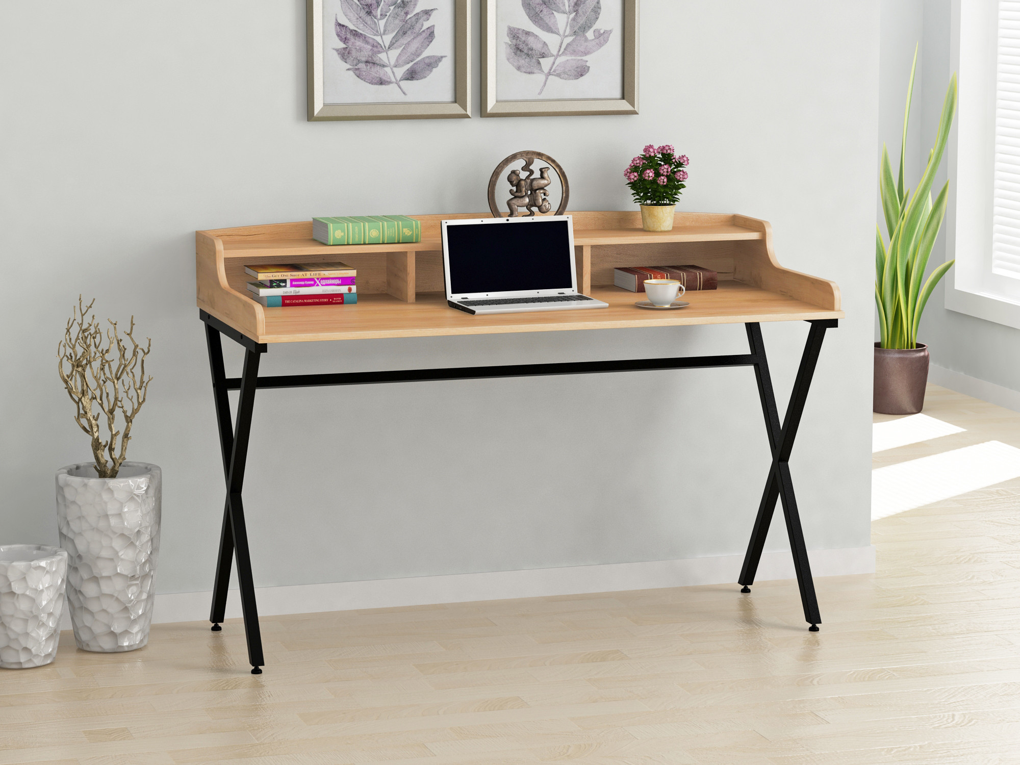 Якщо ви часто користуєтесь зошитами, книгами, декоративними елементами або просто любите, коли все необхідне під рукою — цей стіл створено саме для вас. Місткі ніші допоможуть організувати простір, а полиця стане чудовим місцем для дрібниць, які мають бути у полі зору. Таке рішення дозволяє підтримувати приємний порядок без зайвих зусиль.