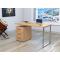 Масивна стільниця товщиною 36 мм виготовлена з ЛДСП з ламінованим покриттям, що має високу зносостійкість. Міцні, надійні, але водночас елегантні металеві ніжки забезпечують стабільну опору для письмового столу. Приємний відтінок світлого або темного натурального дерева чудово поєднується з каркасом сріблястого кольору.