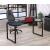 Конструкція столу проста в збірці: дві боковини з'єднані між собою двома балками, на які кладеться стільниця. Регульовані ніжки дадуть змогу виставити виріб на нерівній поверхні. На вибір покупця стіл може бути оснащений отвором для комп'ютерних кабелів чи ні.