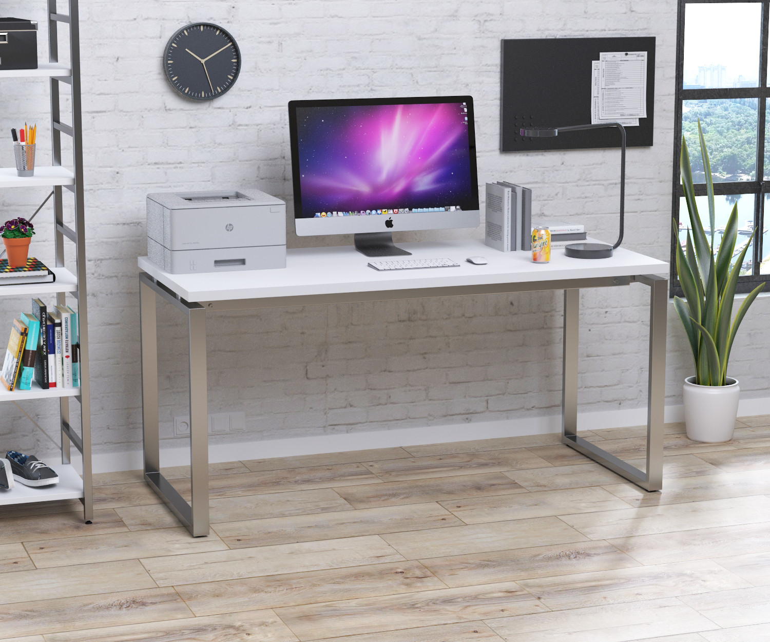 Конструкція столу проста у збірці: дві боковини з'єднані між собою двома балками, на які кладеться стільниця. Регульовані ніжки дозволять виставити виріб на нерівній поверхні. На вибір покупця стіл може бути оснащено отвором для комп'ютерних кабелів або без нього.