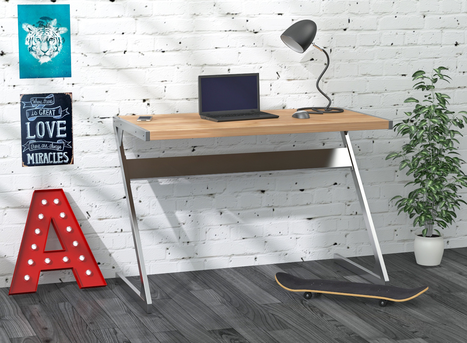 Z-110 має нетипову конструкцію, яка ламає звичні уявлення про письмові столи. Замість чотирьох стандартних опор, стіл спирається на дві Z-подібні металеві ніжки. Між ніжками встановлено балку жорсткості з гнутого металу, а під стільницею — прихована металева решітка, що додає конструкції надійності. Каркас виготовлений з металу товщиною 1,4 мм і пофарбований у сріблястий колір під хром за допомогою порошкового покриття, стійкого до вологи та більшості рідин. На ніжках передбачено регульовані опори, що дозволяють вирівняти стіл на нерівній підлозі.