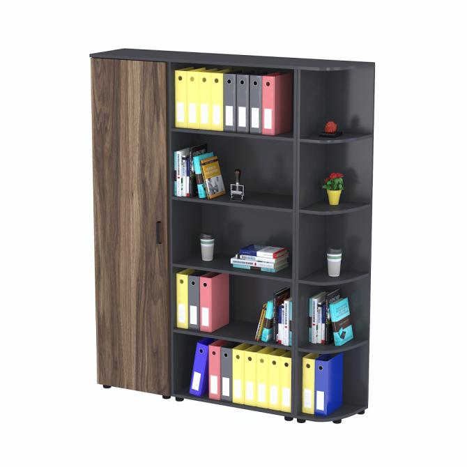 - Дві відкриті секції стелажів забезпечують швидкий доступ до книг, папок і офісного приладдя.