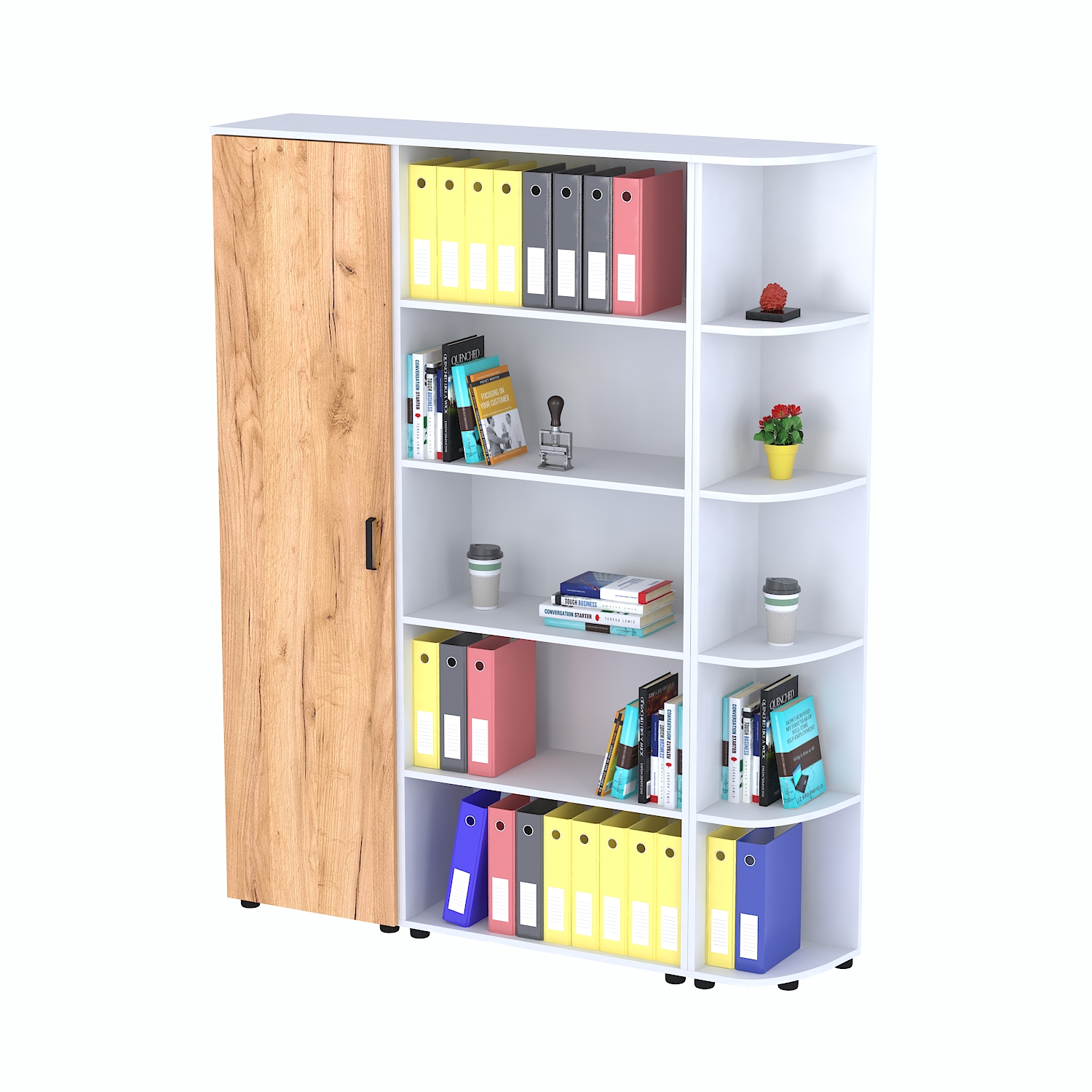 • Дві відкриті секції стелажів забезпечують швидкий доступ до книг, папок і офісного приладдя.