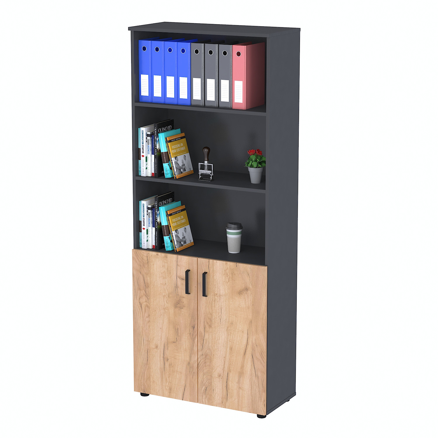 Стелаж NT5-80-2MD - стильне і функціональне рішення для офісу, поєднання відкритих і закритих полиць для зручного зберігання.