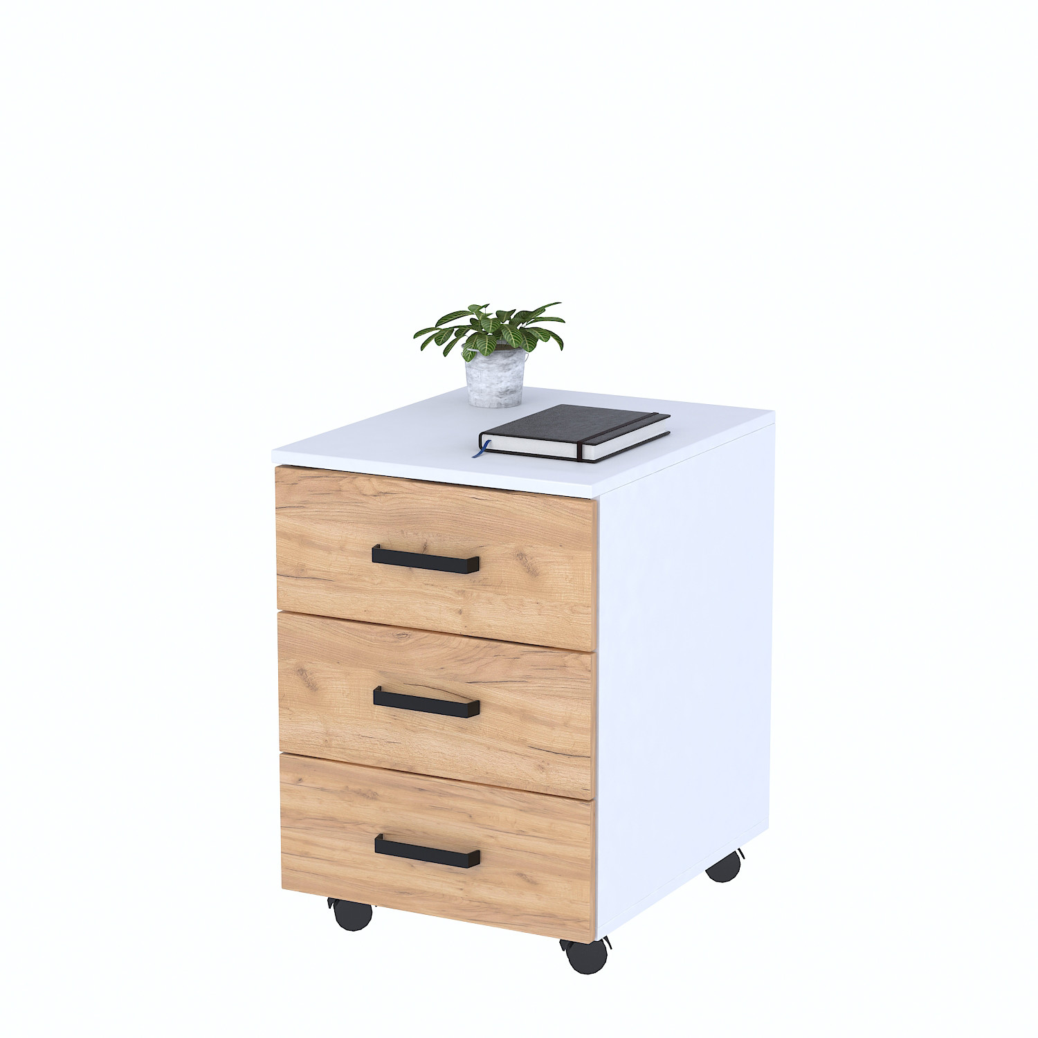 Тумба мобильная NT-3S-42-60 Дуб Крафт золотой - Белый