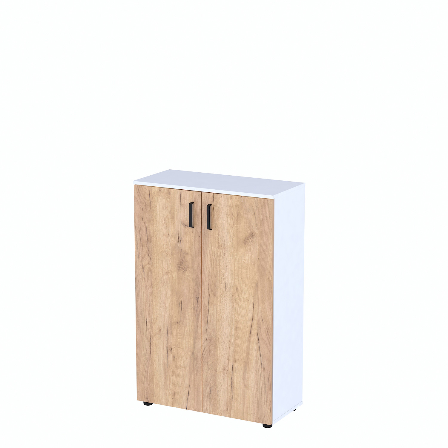 Модель оснащена двома орними дверцятами, за якими розташовано три просторі полиці, забезпечуючи зручне зберігання різних предметів. Верхня поверхня тумби ідеально підходить для розміщення декоративних елементів, документів або інших необхідних речей.