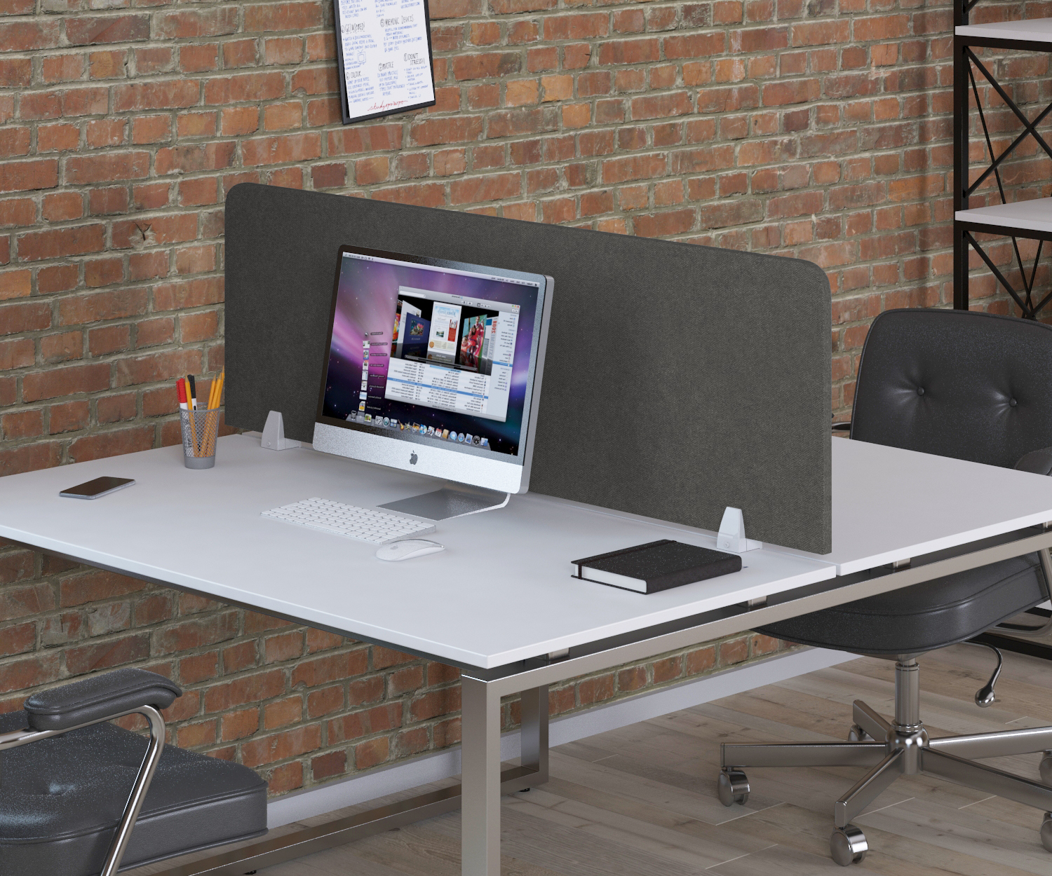 - Практичність. Дуже добре підходить для організації персональних робочих зон на спарених столах, створюючи комфортний і зручний простір для кожного співробітника.