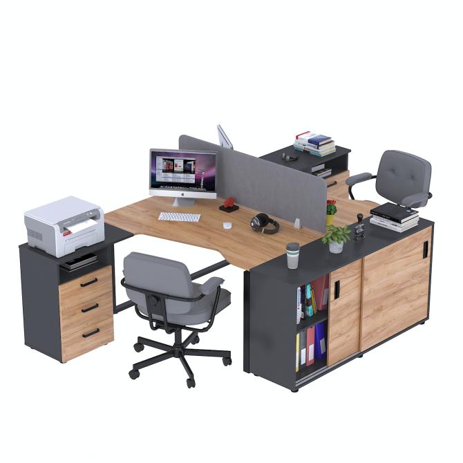 Подвійний кутовий стіл ND2U-3S-135 + LS-141-75 допоможе створити ергономічний, зручний і акуратний робочий простір, який забезпечить комфорт і підвищить продуктивність співробітників.