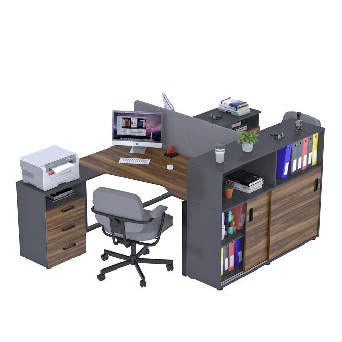 • Додаткова тумба з двома дверцятами і відкритою нішею на дві полиці. Закриті відділення призначені для зберігання документів і офісних матеріалів, а відкрита ніша ідеально підходить для папок, книжок або декоративних елементів.