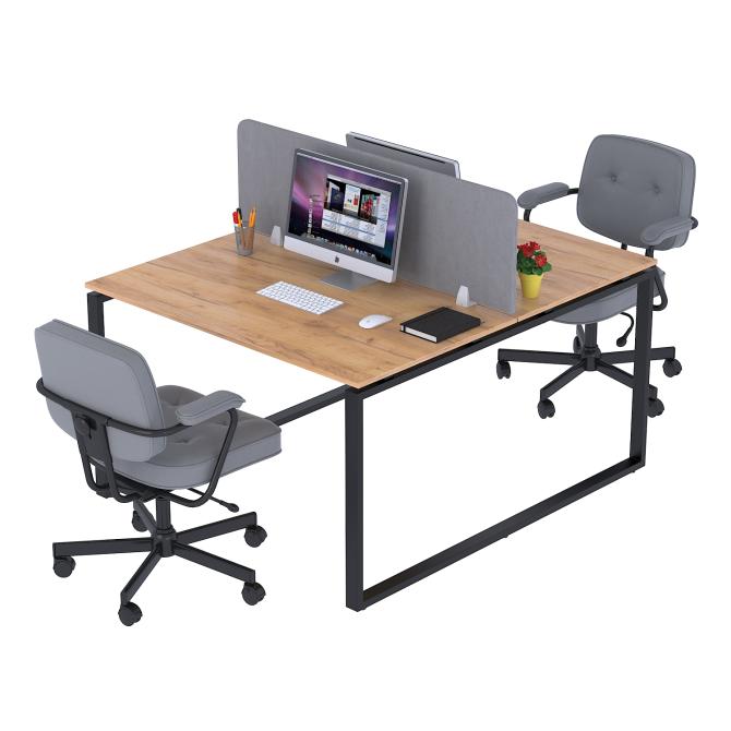 Лаконічний дизайн у стилі лофт поєднує функціональність та естетику. Міцний металевий каркас гарантує надійність, а тонка стільниця, завдяки дизайну конструкції, створює відчуття її зависання в повітрі. Подвійний стіл сприяє командній роботі, створюючи атмосферу відкритості та рівноправності.