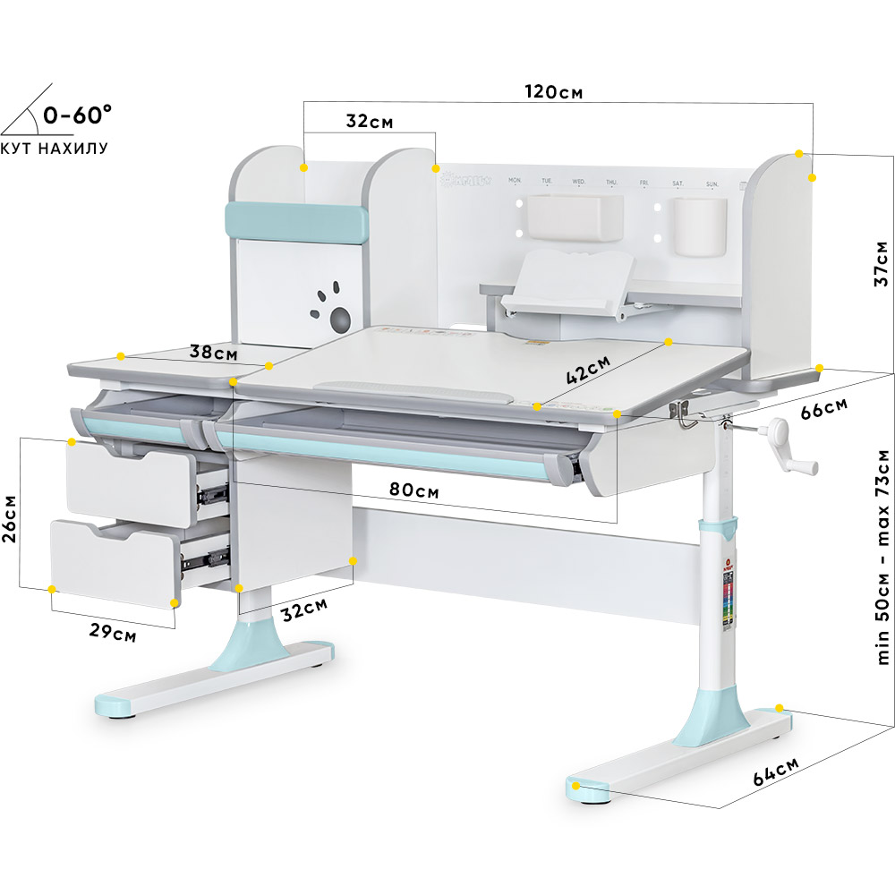Дитячий стіл Mealux Hamilton Multicolor BL з полицею (арт. BD-680 W/G MC+BL з полицею)