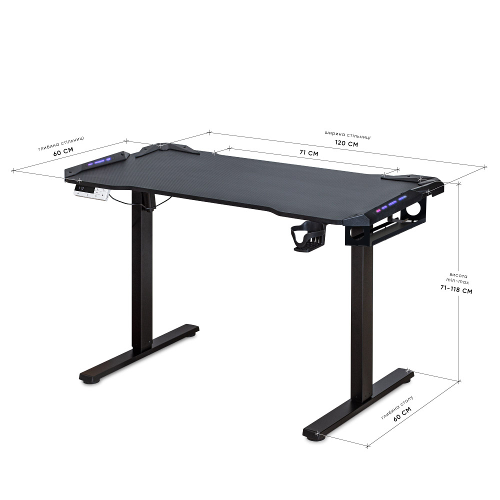Стіл Mealux PowerDesk Carbon RGB з електрорегулюванням висоти (арт. EVO-201 Carbon / B)