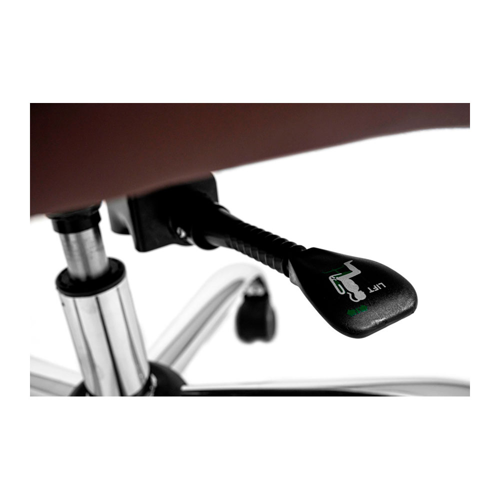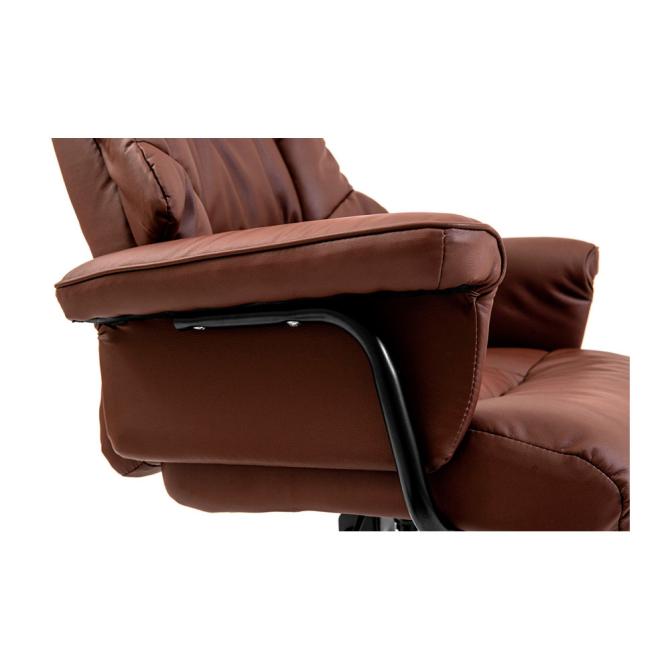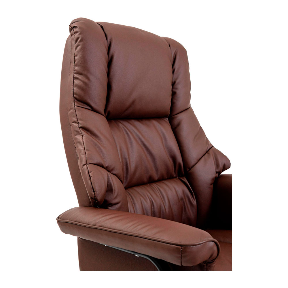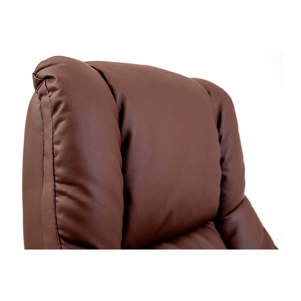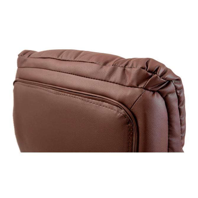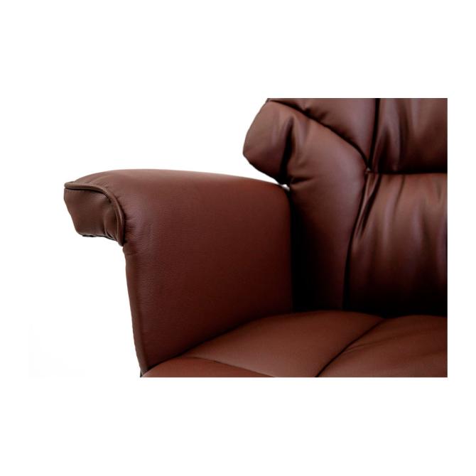 Це крісло покрите високоякісною екошкірою вишуканого коричневого кольору. Великі, м’які підлокітники забезпечують комфортне спирання у будь-якому положенні і зручне розміщення рук під час відпочинку.