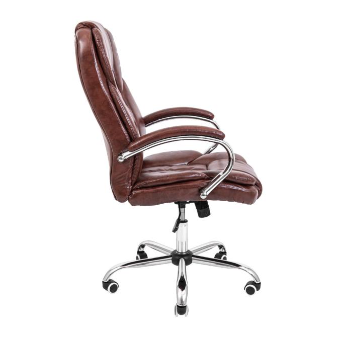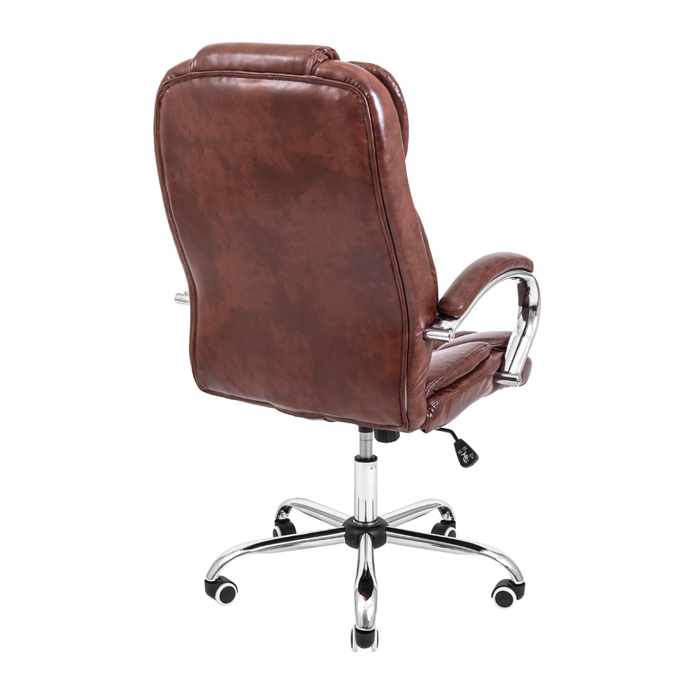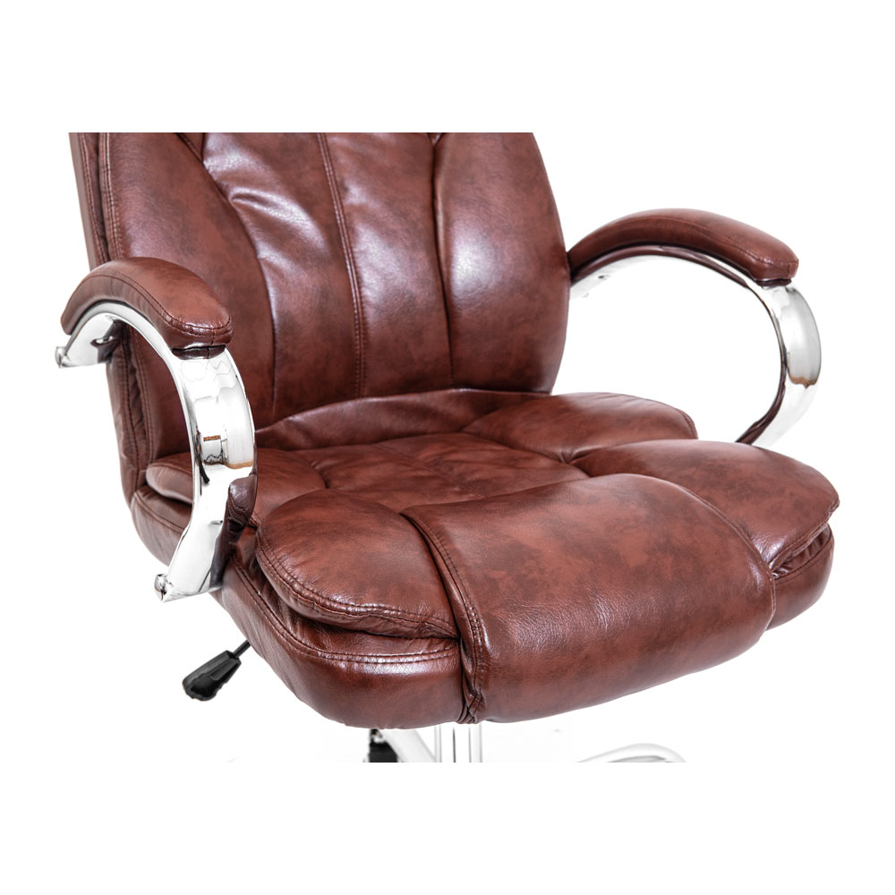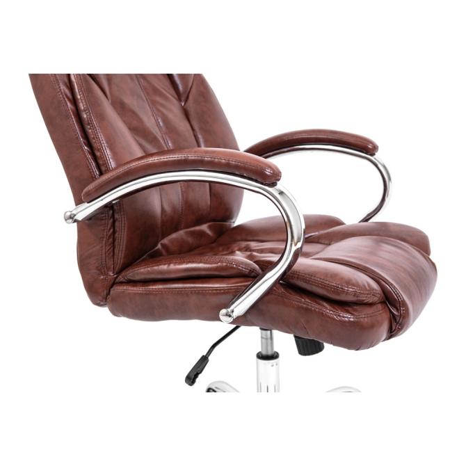 Крісло Richman Гранде поєднує стильний дизайн з хромованими елементами, високоякісний шкірозамінник та комфортну посадку. Завдяки додатковим м'яким подушкам і добре вираженій поперековій підтримці, це крісло забезпечує максимальний комфорт та правильне анатомічне положення тіла. Посилений механізм гойдання M-1 (Tilt) дозволяє регулювати висоту і жорсткість гойдання для індивідуальних потреб. Хромована хрестовина з гумовими роликами додає сучасності та захищає підлогу.