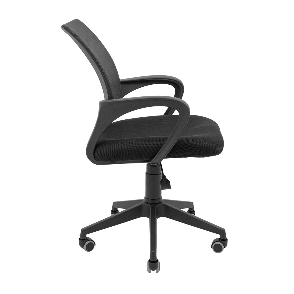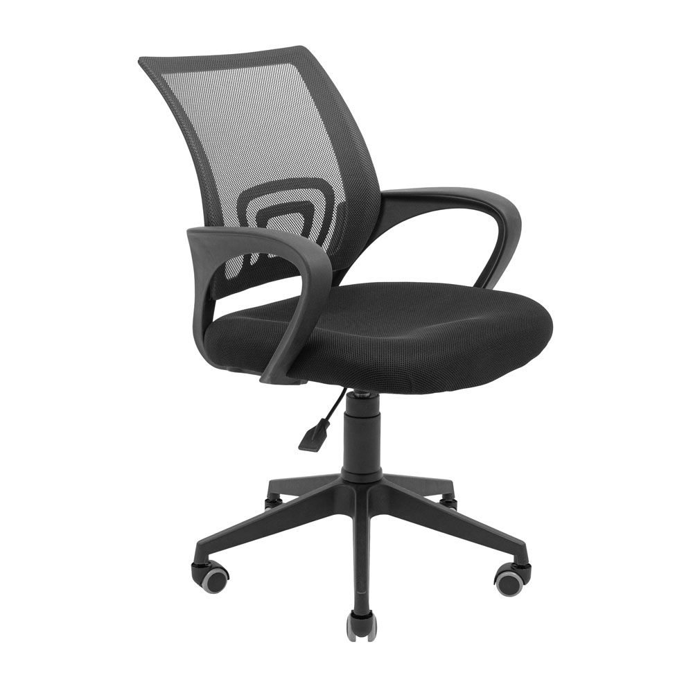 Оббивка крісла виконана з повітропроникної тканини та нейлонової сітки. Спинка має поперекову підтримку, а пластикові підлокітники мають продуману вигнуту форму, що дозволяє зручно розмістити на них руки.