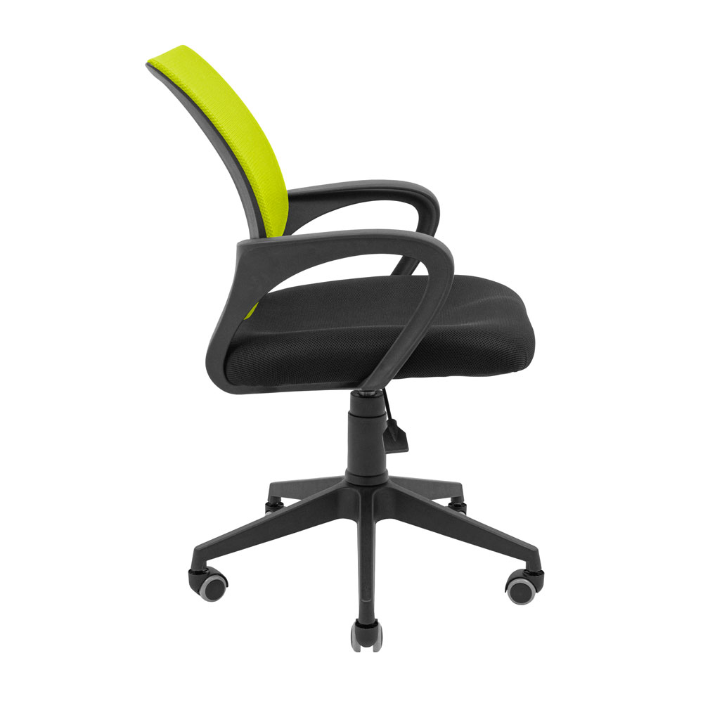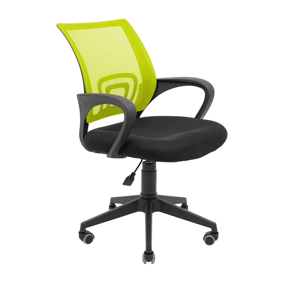 Оббивка крісла виконана з повітропроникної тканини та нейлонової сітки. Спинка має поперекову підтримку, а пластикові підлокітники мають продуману вигнуту форму, що дозволяє зручно розмістити на них руки.