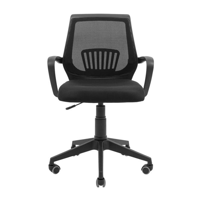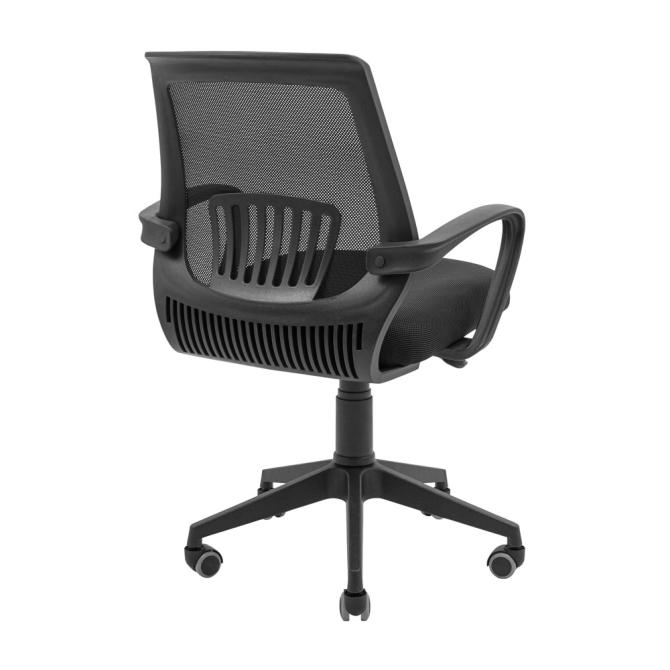 Його низька ергономічна спинка з вигином підтримує поперек і обтягнута нейлоновою сіткою – еластичним та зносостійким матеріалом, що дозволяє повітрю проходити крізь неї. Вона легко «пружинить» під тиском та знижує навантаження на вашу спину.