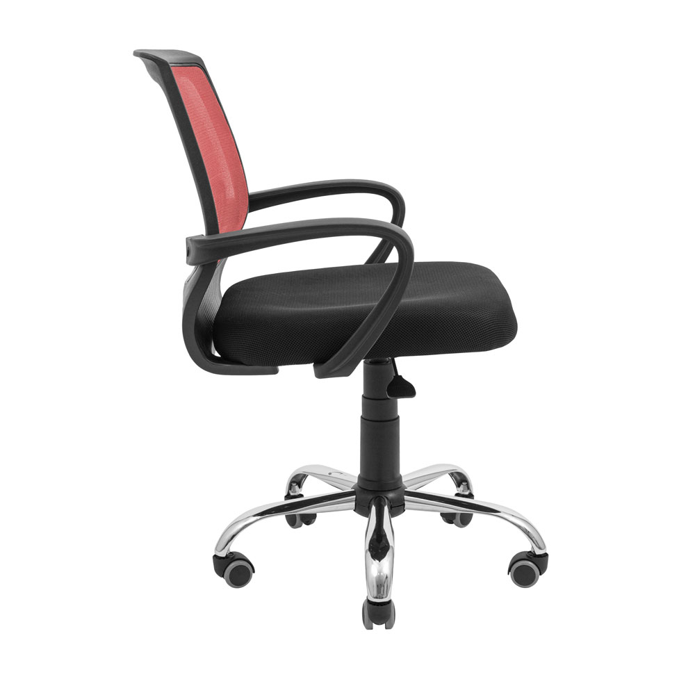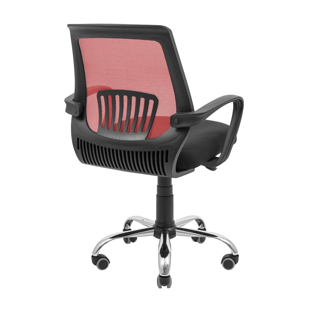 Його низька ергономічна спинка з вигином підтримує поперек і обтягнута нейлоновою сіткою – еластичним та зносостійким матеріалом, що дозволяє повітрю проходити крізь неї. Вона легко «пружинить» під тиском та знижує навантаження на вашу спину.