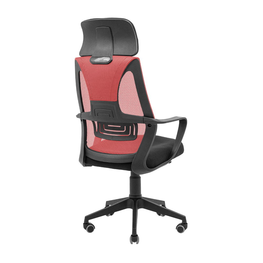 Спинка крісла обтягнута кольоровою нейлоновою сіткою — еластичним та зносостійким матеріалом, у яку інтегрована поперекова підтримка. Також комфорту спинці додає зручний, м’який підголівник, який регулюється за висотою та обтягнутий сітчастою повітропроникною тканиною.
