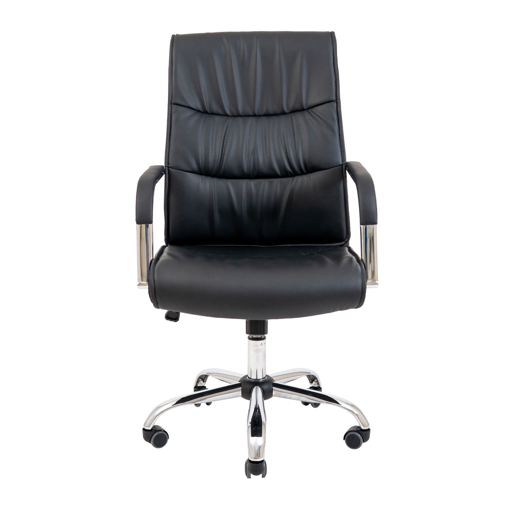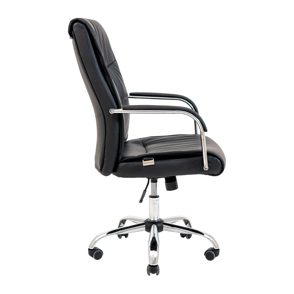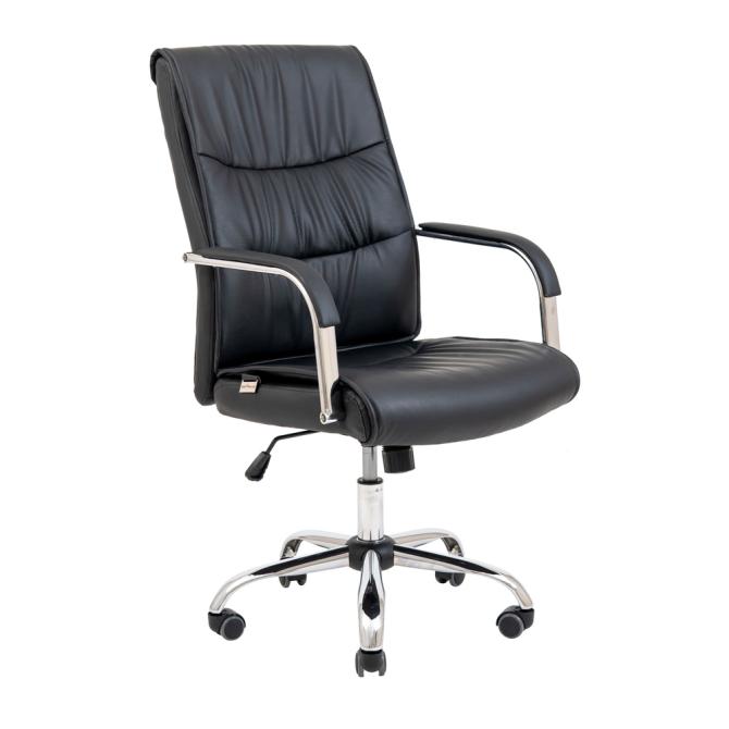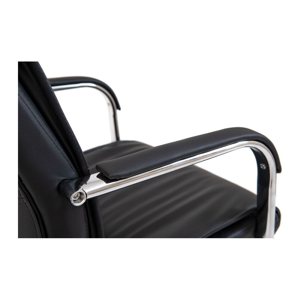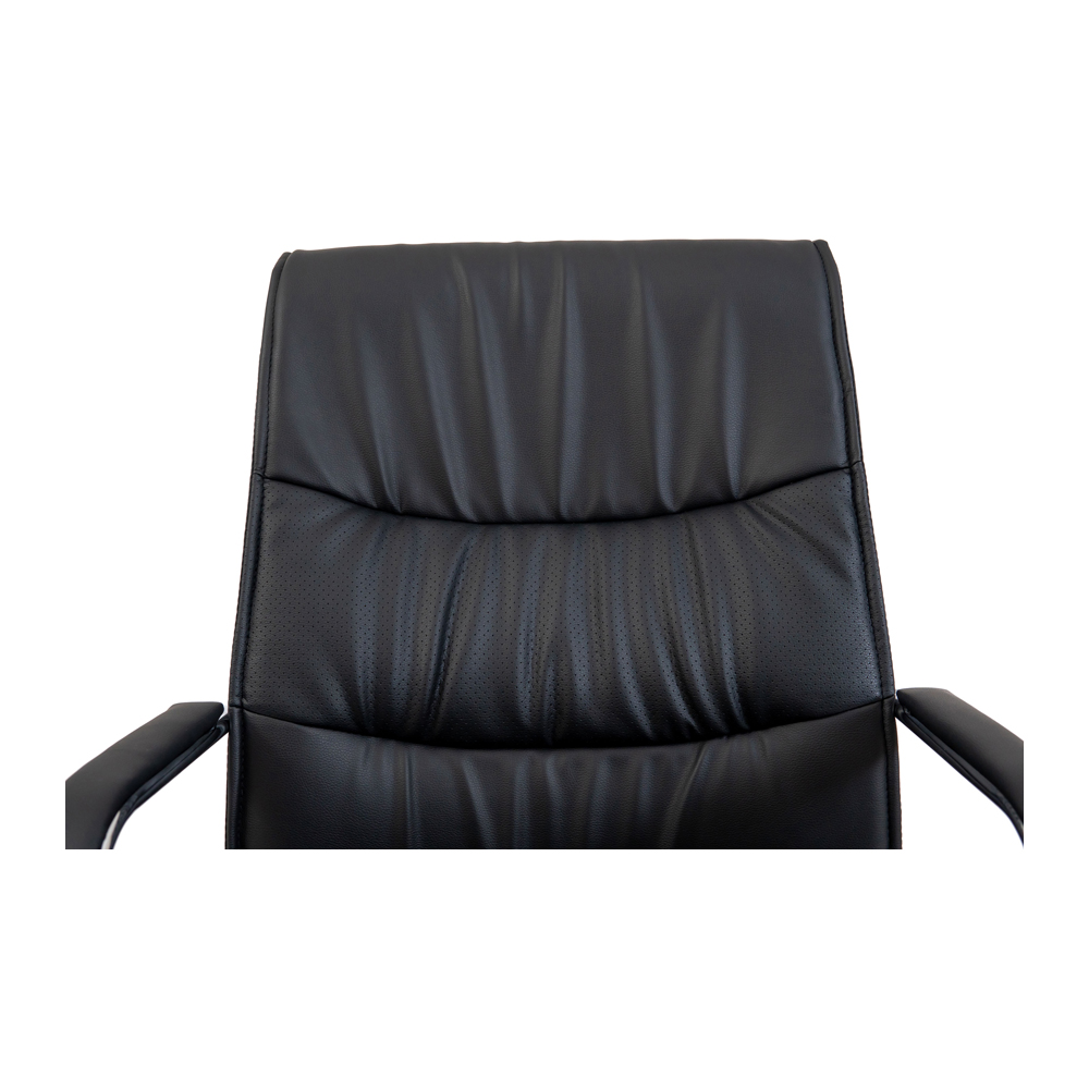 Оббивка крісла виконана з якісного шкірозамінника чорного кольору та має перфоровані вставки, які дозволяють підтримувати оптимальний мікроклімат тіла.